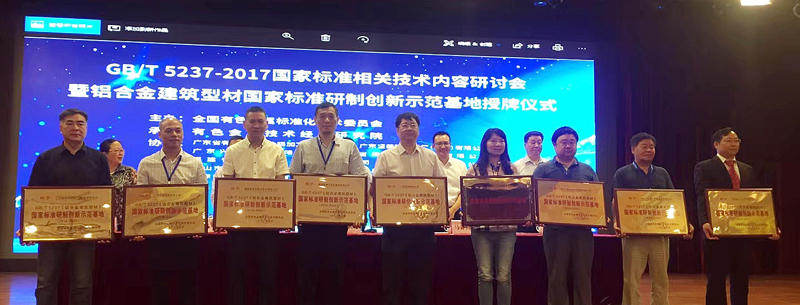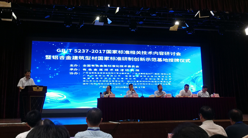 5月15至17日,GB/T5237-2017国家标准相关技术内容研讨会在佛山南海举行。本次研讨会由全国有色金属标准化技术委员会主办,有色金属技术经济研究院承办,广东省有色金属学会铝加工专业委员会及ballbet贝博铝业有限公司等单位协办。作为相关国家标准的起草单位,ballbet贝博铝业获颁《铝合金建筑型材国家标准研制创新示范基地》牌匾。 ballbet贝博铝业有限公司总工程师潘学著代表广东省有色金属学会铝加工专业委员会致辞并现场讲解了我司起草的YS/T680-2016《铝合金建筑型材用粉末涂料》行业标准。(撰稿: 企划宣传 康健)