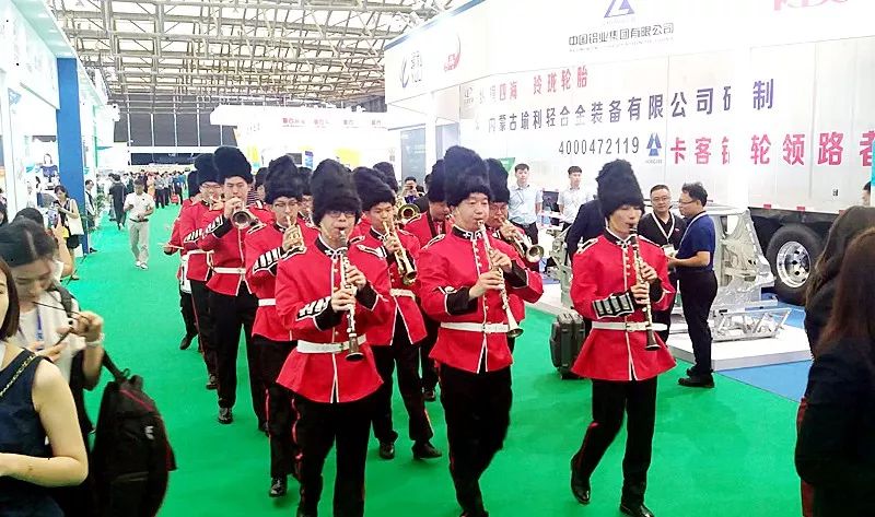 展会开幕式乐队行进在展馆。