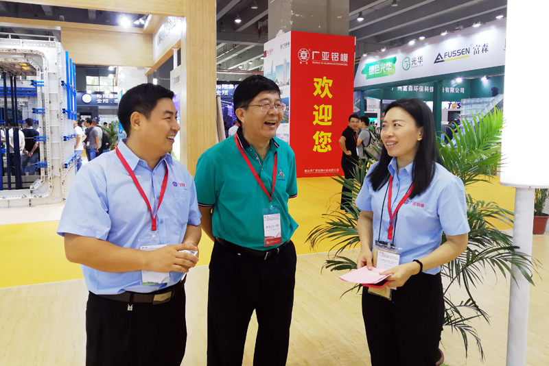 中国模板脚手架协会高峰秘书长(中间)莅临ballbet贝博铝模展位 据悉,本届展会是由国家发改委、住房和城乡建设部鼎力支持、中国模板脚手架协会和广东省住房城乡建设厅共同主办的国际性建筑模板、脚手架技术及装备的专业展会。共有来自全国500多家地产商、4500多家工程商及配套商共襄盛举。模板类、脚手架类及各种高空施工技术平台等三大类近300多个品项集中呈现,规模空间。较第一届,本届展会已随步发展成为中国建筑模板、脚手架及建筑设计领域新材料、新产品和新技术应用发展的风向标。