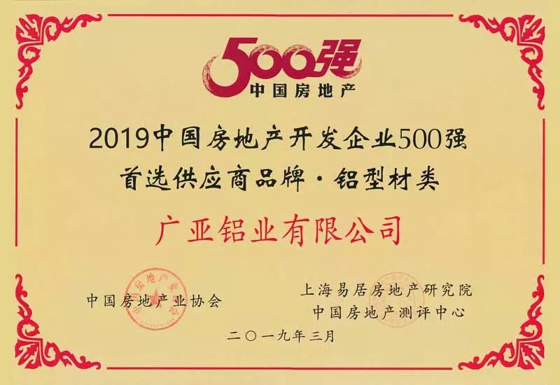 ballbet贝博铝业连续六年荣登中国房地产500强十大首选品牌