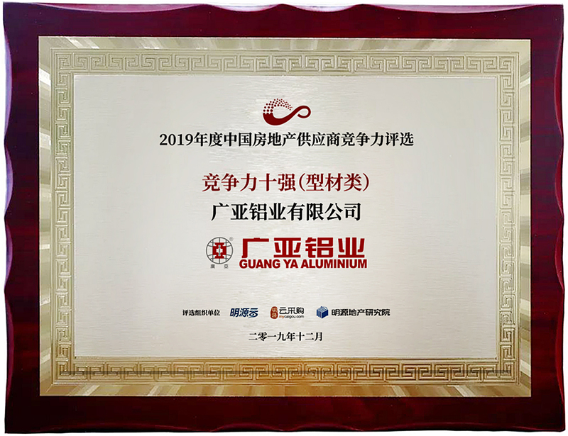 ballbet贝博铝业荣登“2019年度中国房地产供应商行业竞争力十强”榜!
