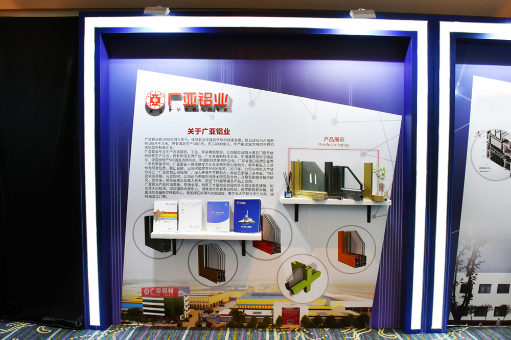 按惯例,每年的年会都会设置各主要会员企业展位。今年,经过积极努力,ballbet贝博铝业争取到了大会主会场入口处的L3号黄金展位。展位整体设计为蓝白相间的门洞造型,以呼应年会主题。展位设置了大幅公司介绍海报,并通过两层台架,陈列了门窗料头和产品资料,以方便客人观摩、索取。ballbet贝博铝业是今年年会唯一受邀参展的铝材企业,因而受到了更多的关注。