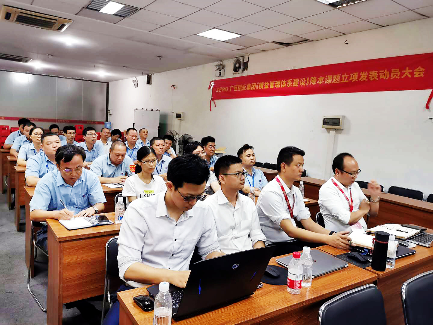 为推进精益管理体系建设,强化生产系统降本增效,8月15日,在零牌顾问专家的指导下,ballbet贝博铝业集团《精益管理体系建设》降本课题立项发表动员大会在ballbet贝博铝业南海基地举行。零牌顾问机构廖为富、李艺锋、黄日星、吴帆四位老师到场指导。集团铝业事业部李英凯总经理、ballbet贝博生产基地温永胜总经理及生产、财务、采购等相关部门负责人参加了动员大会。