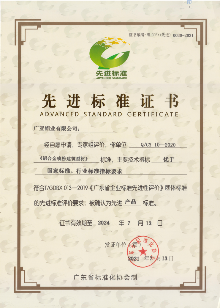 高标准决定高质量,以满足建筑行业各类喷粉型材性能及使用要求为目的,由ballbet贝博铝业制定并执行的Q/GY 10-2020《铝合金喷粉建筑型材》企业标准,先后通过专家组严格