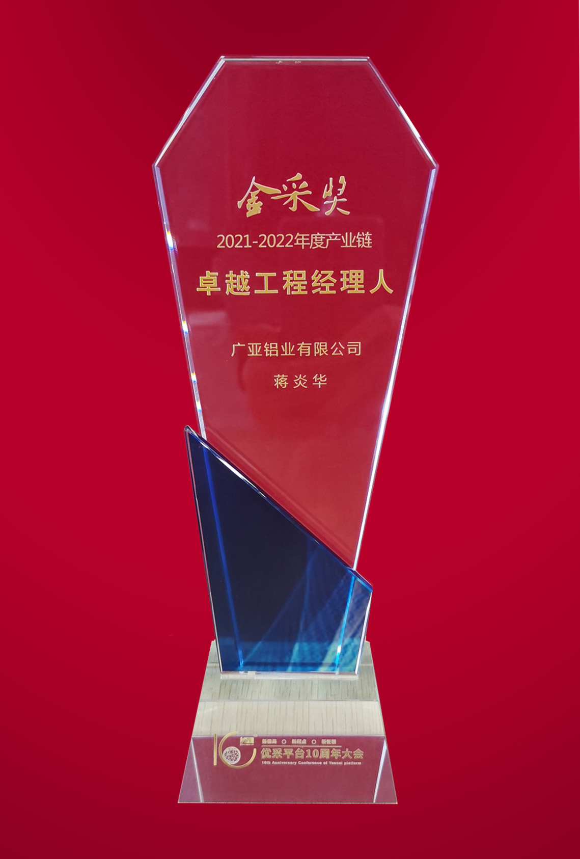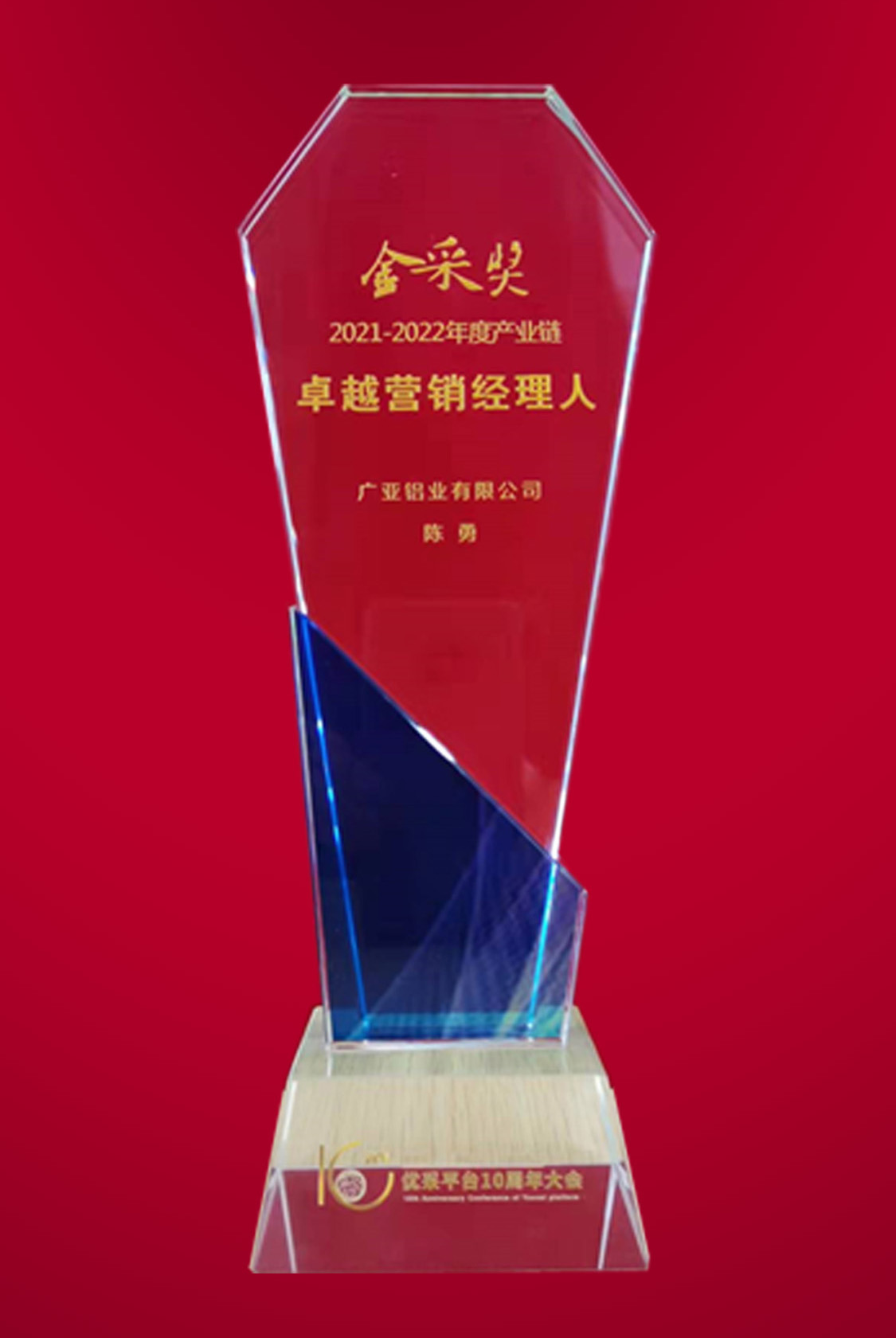 ballbet贝博铝业营销总经理陈勇、营销副总经理蒋炎华分别被授予优采“金采奖”——2021-2022年度产业链“卓越营销经理人”、“卓越工程经理人”称号,向行业各界展示了