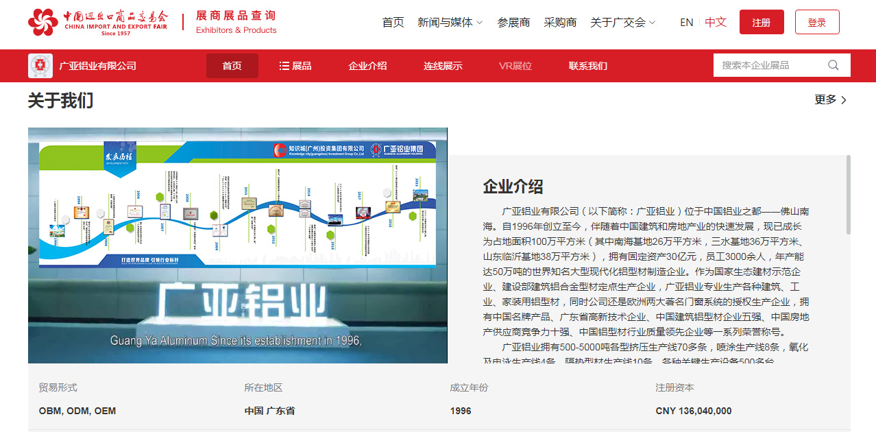 作为每年参展的“老广交”,ballbet贝博铝业已积累一套成熟的运作经验,依托广交会线上平台,前瞻布局“云展厅”,以图片、视频、3D、VR等多维展示形式,通过线上