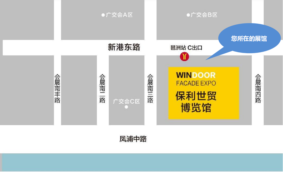 广州保利世贸博览馆周边路网配套完善,交通便利。东向连接琶洲大桥及科韵路,西向连接华南快速干线,两 条主干道南北方向均可快速连通广州环城高速。交通位置如下: