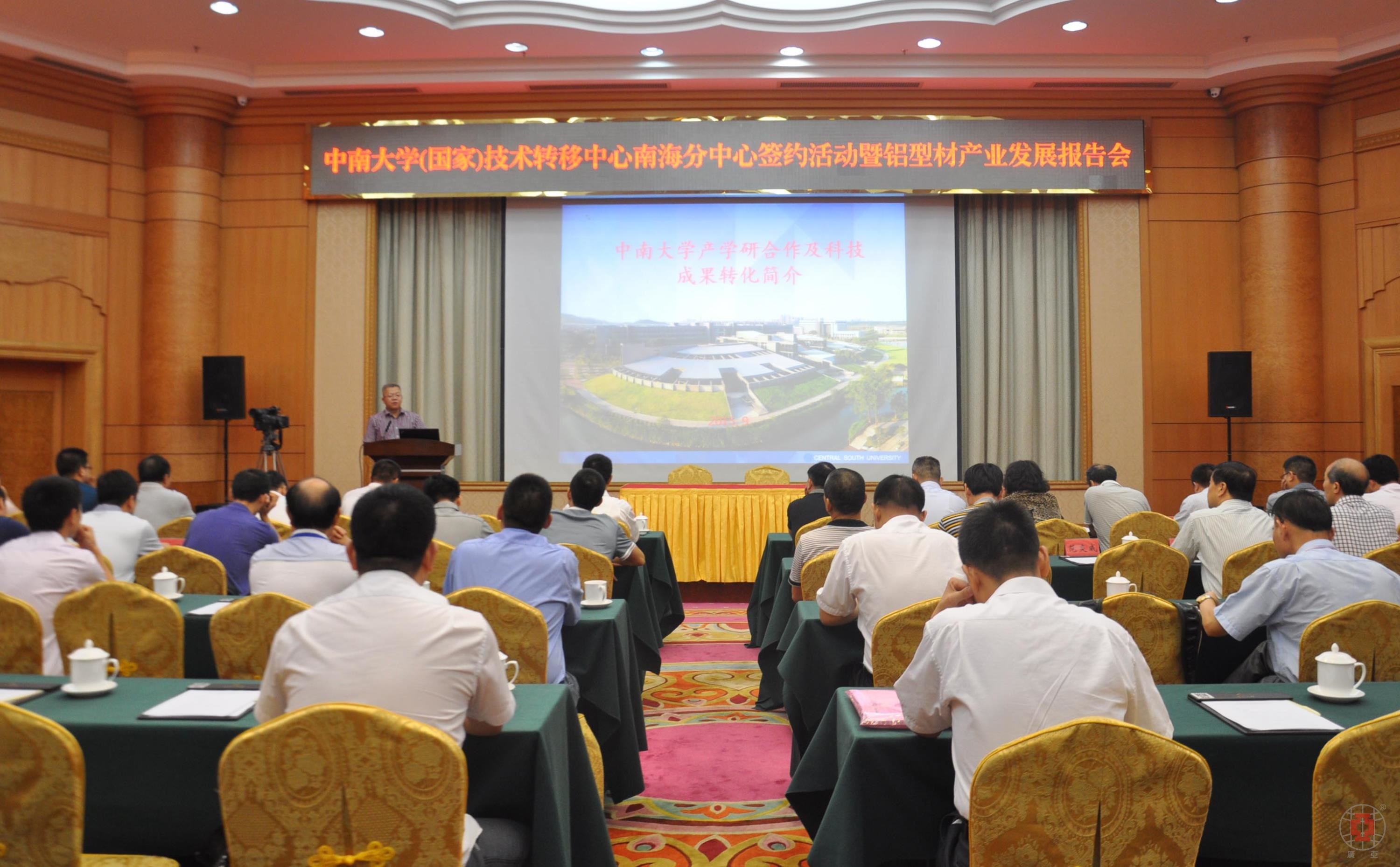 为推动南海铝型材产业创新转型,9月7日上午,中南大学(国家)技术转移中心南海分中心签约活动暨铝型材产业发展报告会在南海迎宾馆隆重举行,南海区区委常委、副区长李晓佳,副区长刘铭恩,中南大学(国家)技术转移中心主任李昌友以及材料科学与工程学院院长李周等领导和专家,南海区发改、经贸、科技、教育、人才办、人社局、工商联、各镇街分管经济及经促局负责人,南海区铝型材协会和模具协会会员企业负责人,以及南海总商会和各行业协会会长等出席了大会。
