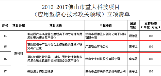 2017年我司申请的《高性能电子产品用铝合金挤压板关键技术研究与产业化》项目获得佛山市首批重大科技项目(应用型核心技术攻关领域)项目的立项肯定及100万的资金奖励,充分体现了我司突破该关键核心技术、提高自主创新能力,ballbet贝博高性能电子产品用铝合金挤压板技术将更上一层楼。该项目的成功研发与推广应用将为行业的转型升级起到很好的示范作用,打破国外的技术垄断,带动铝型材加工行业产业结构调整和高附加值方向发展。