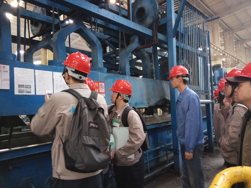 各车间负责人带领学生深入生产一线,通过现场介绍、观察、提问等方式,让同学们了解每个生产环节的操作情况,使理论与企业生产实践相结合,对铝材生产各个环节有了更为直观和深层次的认识。