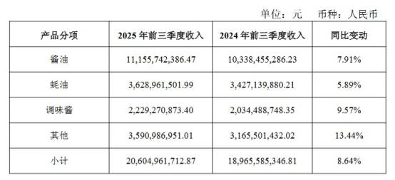 25年10月28日,海天味业发布2025年第三季度财报。在餐饮业波动、消费需求承压的市场环境下,公司营收与净利润双双实现正增长,前三季度营收更突破216亿元,创下历史同期新高。这份稳健成绩单的背后,是两大核心动力的协同支撑:海天酱油作为核心品类,凭借深厚市场根基筑牢基本盘;海天蚝油等新兴品类则以强劲增长,为品牌注入持续发展动能。